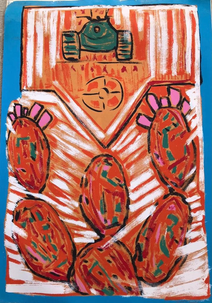 בשיר אבו רביע ציור 30 אבסטרקט, 90*60 הדפס משי. ללא מסגרת