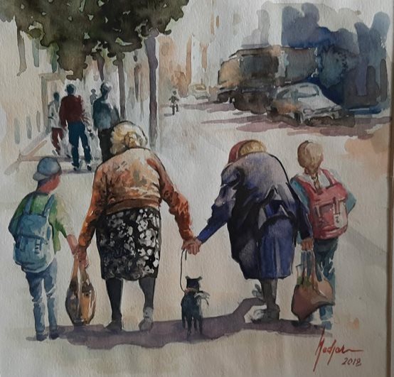 ויליאם נדגאר בחזרה מביהס תמונה 14 47.5*49 אקווארל ללא מסגרת פספרטו בלבד
