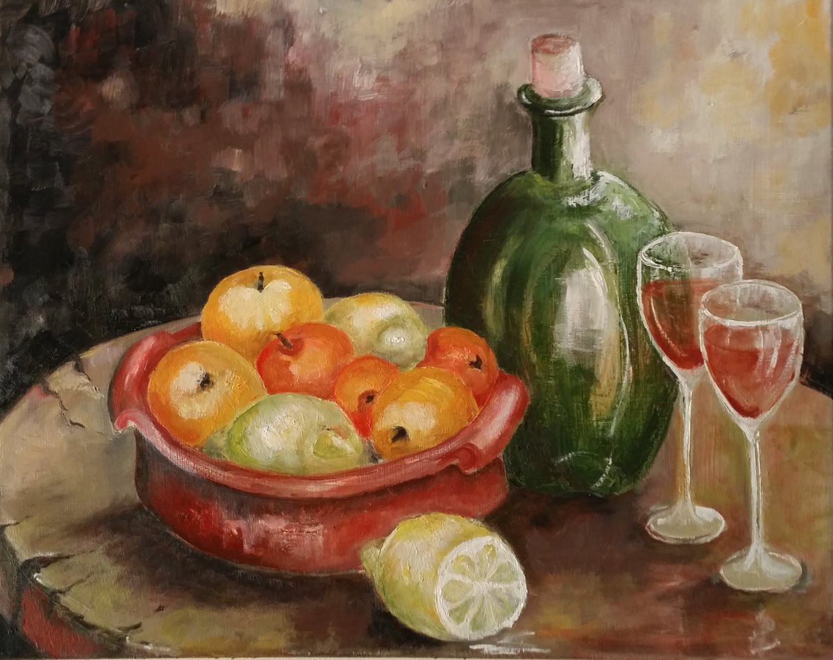 ציור 10 תפוחים ויין עליזה רענן 40* 50